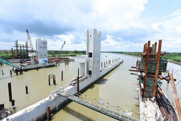 Cống kiểm soát triều Bến Nghé nằm trên kênh Tàu Hủ – Bến Nghé (giáp quận 1 và quận 4) hiện đã đạt 85% tiến độ dự án.