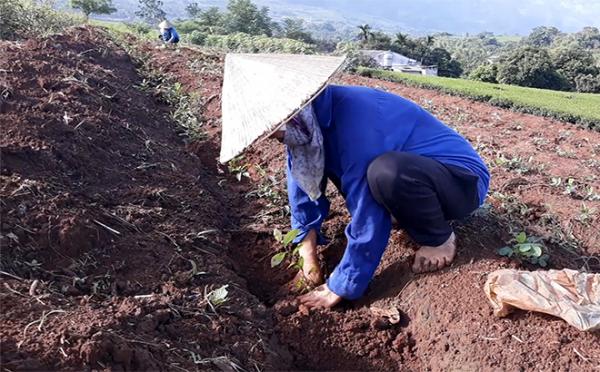 Người dân tranh thủ thời tiết mưa nhiều trồng thay thế chè già cỗi bằng các giống chè mới cho năng suất, chất lượng cao như: LDP 2, Phúc Vân Tiên, PH1.
