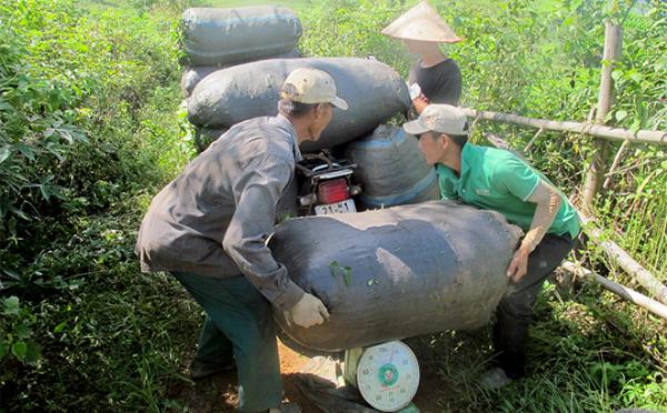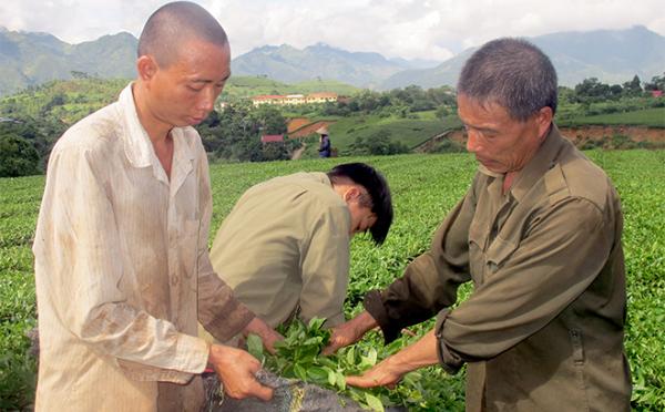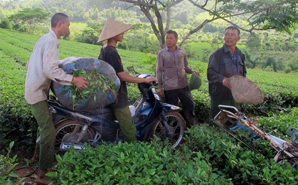Người dân thu hái và bán chè cho Công ty cổ phần chè Nghĩa Lộ.