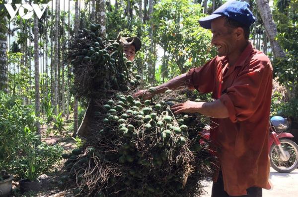 Mặc dù mới bước vào đầu vụ thu hoạch, nhưng nhiều hộ nông dân đã có thu nhập hàng chục triệu đồng nhờ cau tăng giá.