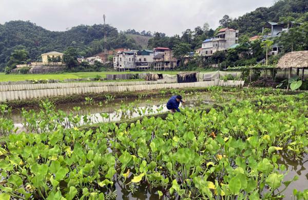 Hơn 1.000m2 đất lúa được anh Nguyễn Văn Sáu, xã Đồng Thắng (huyện Chợ Đồn, tỉnh Bắc Kạn chuyển sang nuôi ốc nhồi.