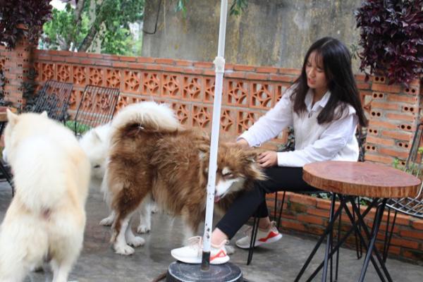 Không gian quán thiết kế giản dị và gần gũi. Khách có thể vừa nhâm nhi cà phê vừa ôm hoặc ngắm nhìn, vui đùa cùng cún.
