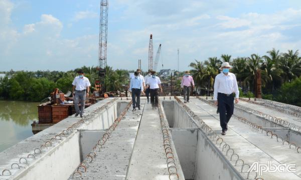 Chiều 17-8, Chủ tịch Ủy ban nhân dân (UBND) tỉnh Tiền Giang Lê Văn Hưởng đến kiểm tra tiến độ xây dựng cầu Bình Xuân (TX. Gò Công) và cầu Kinh Xáng (huyện Châu Thành).