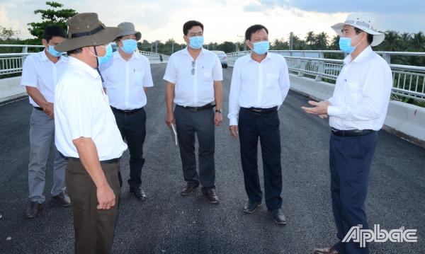 Đồng chí Lê Văn Hưởng kiểm tra tiến độ xây dựng cầu Bình Xuân.
