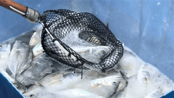 Cũng theo ghi nhận của PV, trong ngày 20/8, hầu hết các lồng bè ở đây đều buộc phải tranh thủ vớt nhanh số cá còn sống đem bán tống bán tháo cho thương lái với giá rẻ từ 20 – 30 ngàn đồng/kg.