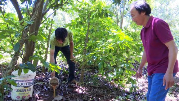 Để cung cấp nguồn dinh dưỡng cho cây, ông Phú mua cá tạp, phân chuồng, rác thải vỏ cà phê, vỏ thanh long…sau đó trộn với men vi sinh ủ trong nhiều ngày. Khi hỗn hợp hữu cơ đạt độ “chín” ông chia thành từng phần nhất định chăm bón cho cây.