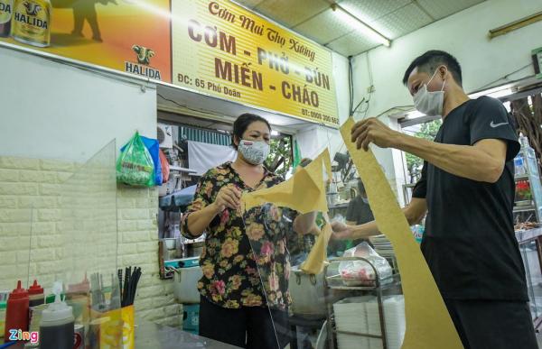 Trước đó, một số hàng ăn trên địa bàn thành phố đã chủ động lắp đặt các tấm vách ngăn, màn chắn ngay từ chiều 18/8.
