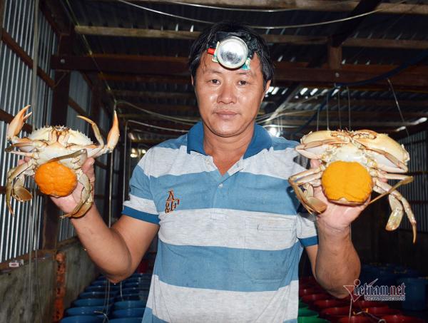 Anh Niêm làm nghề vỗ béo cua biển để chúng nhanh đẻ trứng.